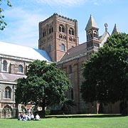 St. Albans was the Iron Age settlement and then Roman town of Verulamium. It was an important place with the status of a 'Municipium'. St. Alban was a Roman soldier. executed for converting to Christianity after sheltered a priest in his house. He was buried in a cemetery outside the old town walls and it was around his mausoleum that the Saxon and medieval town grew up. A church had been built over his grave and his shrine attracted pilgrims. King Offa turned it into a rich abbey. The present building is largely Norman, but you can easily see how it was constructed using vast numbers of recycled Roman tiles. King Henry V's brother is buried there. It's most famous abbot was the leprous Richard of Wallingford, something of a medieval Eynstein. He invented a clock which was way ahead of its time. The city is also well known for its Roman Museum and the Fighting Cocks Inn which is reputed to be the oldest in the country. The pictures on this page are cropped examples of images in our high resolution photo library. Please e-mail us for details of these or similar image availability at our very reasonable reproduction rates. |