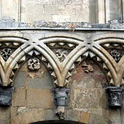 Glastonbury Abbey was supposedly founded by St. Joseph of Arimathea, who brought the Holy Grail to the Chalice Well in Glastonbury in the mid-1st century. The abbey dominated the small town for centuries and, in medieval times, became enormously rich from the offerings of devoted pilgrims who visited the shrines of the many saints and kings which the abbey presented to the gullible. Most famous were those for King Arthur, King Edmund the Magnificent, King Edmund Ironside, King Edgar the Peacemaker, St. Dunstan, St. Patrick, St. Aidan, St. Hilda, St. Bede, St. Paulinus, St. David and St. Gildas; but Glastonbury had a marvellous marketing machine and many of its claims were probably false. The pictures on this page are cropped examples of images in our high resolution photo library. Please e-mail us for details of these or similar image availability at our very reasonable reproduction rates. |