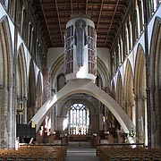 Llandaff Cathedral was probably established by St. Teilo in the mid-6th century, although legend pushes its foundation back to the time of St. Dyfrig (or Dubricius) Both saints have shrines within the present building, though they more closely resemble medieval effigial tombs. St. Teilo's skull survived the Reformation and is still kept here. The cathedral has had a bizarre and chequered history. It is almost entirely of 13th century date, but has undergone an extensive Victorian restoration. In Georgian times the nave had no roof and the east end was turned into a classic Greek temple! The nave is now dominated by Epstein's modern Christ in Majesty, but the church's greatest treasure is Rossetti's triptych featuring King David. There are also some good Morris windows and early 16th century tombs to the Mathew family. The pictures on this page are cropped examples of images in our high resolution photo library. Please e-mail us for details of these or similar image availability at our very reasonable reproduction rates. Location release may be required for some photos. |