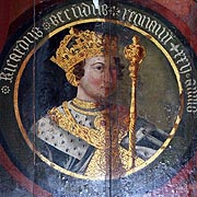 King Richard II, the eldest surviving son of the Edward, the Black Prince, and Joan of Kent, was born at Bordeaux. He became heir to the Crown upon his father's death, in June 1376, and, upon the death of his grandfather, Edward III, a year later, king, at the age of ten and a half years. No regular regency was established at his accession, but Parliament nominated a council and assumed a general control over it. In this council, John of Gaunt, the eldest surviving son of King Edward, had little power. In 1381, King Richard, aged only fourteen-and-a-half, showed splendid courage and craft in facing and subduing, in London, the Peasants’ Revolt, the worst insurrection of the lower classes that ever threatened society in England. In the next year, he was married to his first wife, Anne of Bohemia. His uncles, John of Gaunt, Duke of Lancaster, and Thomas, whom he created Duke of Gloucester, as well as the Earls of Warwick, Arundel, Nottingham and Derby, were "over mighty subjects," constantly dangerous to the Crown. Richard seems early to have taken refuge in the society of what these men called 'favourites', such as Michael de la Pole, Robert de Vere and several of his father's old companions in arms. Accordingly, in the Parliament of 1386, the opposition demanded a commission of 'reform', which was to govern the Kingdom for a year, and, after some long resistance, the King was obliged to give way. Such of the favourites as the opposition was able to catch were put to death in 1388. Richard professed to acquiesce, but he was only biding his time for vengeance. This did not come until in 1396. Richard had married his second wife, the child bride, Isabel of France, and concluded a long truce with the French Crown. In the next year, he contrived to arrest Gloucester and Arundel, always his secret enemies. Then, overawing a parliament by the presence of a strong armed levy, he got the Acts of 1386 and 1387 repealed, condemned Arundel, Gloucester and Warwick to death, banished Archbishop Arundel, but acquitted Derby and Nottingham, whom he soon afterwards advanced to Dukedoms of Hereford and Norfolk respectively. A fresh Parliament, in the next year, at Shrewsbury gave the King the customs for life and he, afterwards, interpolated, into the Act, clauses still more favourable to the Royal authority. Meanwhile, the two remaining leaders of 1387, now Dukes of Hereford and Norfolk, could not but feel uneasy. Each suspected the other of maligning him to the King. They quarrelled and challenged each other to a jousting duel. The King stopped the duel when the combatants were already in the lists, and banished them both. To Hereford, however, he expressly promised the estates of his father, John of Gaunt, if that prince should die during his son's exile. John died in 1399 and Richard violated his promise by confiscating the Lancastrian estates. Duke Henry returned from France and landed in Yorkshire, professing to claim only his father's title and property. However, Richard's government had been so unpopular that Henry was eventually able to go on to claim the Crown itself. Richard was in Ireland when Henry landed, and Henry, though as yet acting only as Duke of Lancaster, was practically master of the kingdom before his rival's return in July 1399. They met at Flint. Richard's own army had already melted away or deserted him there and he was, at once, treated as a captive. He is said to have offered to resign the Crown there and then, but the actual resignation did not take place till he had been taken in Henry's train to London, where he was sent to the Tower. A committee nominated by a parliament, which Henry had called in Richard's name, received his resignation. Richard was confined in various places, until a rising of his friends in 1400 which, though easily put down, is supposed to have led Richard's murder by starvation at Pontefract Castle. He was thirty-three. Numerous traditions that he was alive and had escaped to Scotland or elsewhere were handed down, but none of them are capable of proof. Richard's character has been a standing puzzle to historians, for it was evidently full of self-contradictory traits. The high-spirited boy who, alone of English sovereigns before George III, was ever called upon to confront a dangerous mob, and who emerged so triumphantly from that ordeal, ended as a melancholy, perhaps an insane captive. Fierce, impulsive and affectionate at some periods of his life, he was crafty and secret at others, yet with occasional fits of dreaminess. He had evidently a very high idea of Royal prerogative and a great contempt for Parliament and for his nobles. He was able to show much interest in letters and in art, though we do not know whether he was himself at all learned. He was prudent enough to make peace with France, which no doubt added to his unpopularity, and to undertake on two occasions, though without success, the long neglected task of restoring peace to Ireland. He was a man of great stature and great personal beauty. Edited from CRL Fletcher's 'Historical Portraits' (1909) The pictures on this page are cropped examples of images in our high resolution photo library. Please e-mail us for details of these or similar image availability at our very reasonable reproduction rates. Location release may be required for some photos. Click for Next